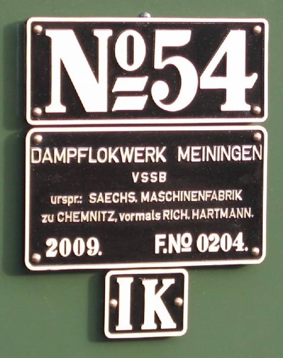 Dne 26.června 2009 byla slavnostně předána do provozu nová parní lokomotiva č.54, vyrobená v dílnách Meiningen. Byl tak završen projekt návratu parní lokomotivy řady IK na koleje tratí rozchodu 750 mm. Tyto lokomotivy patřily nerozlučně k počátku provozu na saských úzkorozchodkách. Žádná původní lokomotiva řady IK se nezachovala. Snímky ze soboty 24.10.2009 představují lokomotivu č.54 na krušnohorské trati Steinbach - Jöhstadt.